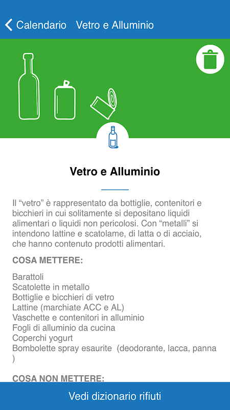 The app offers the user a series of functions through which it is possible to learn and learn more about waste disposal methods, but it is also a useful tool for sending reports and requests for home collection, knowing the opening times and days of the waste collection centre. Collection, customize notifications and many other functions.
