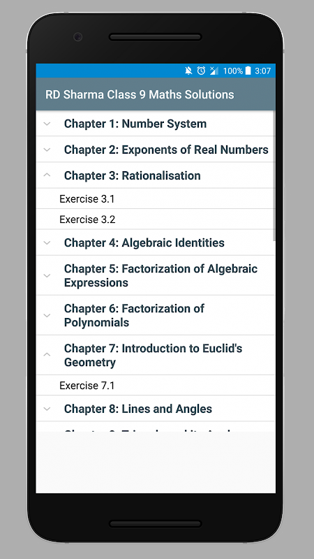 This app contains answers of all the chapters included in the RD Sharma Class 9 Book: