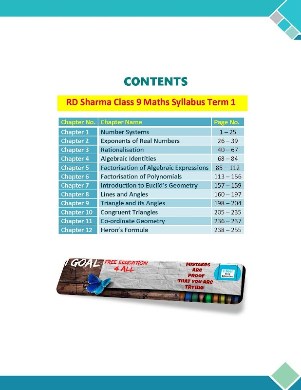 Contents of the App: RD Sharma Class 9 Maths Syllabus Term 1