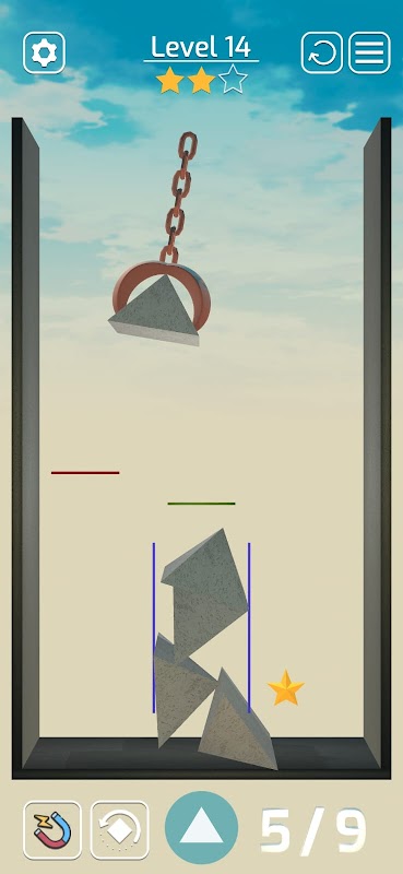 Release the shapes from the chain to reach and touch the green line for 3 seconds.