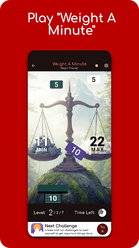 React Trainer includes a set of mini games whose aim is to help improve your reaction and focus skills. The games are engaging, yet simple. A few minutes of play each day can help to train your mind to focus, when faced with stressful situations.