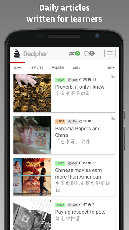 Decipher is the best Chinese app to inspire you to learn Mandarin every day.