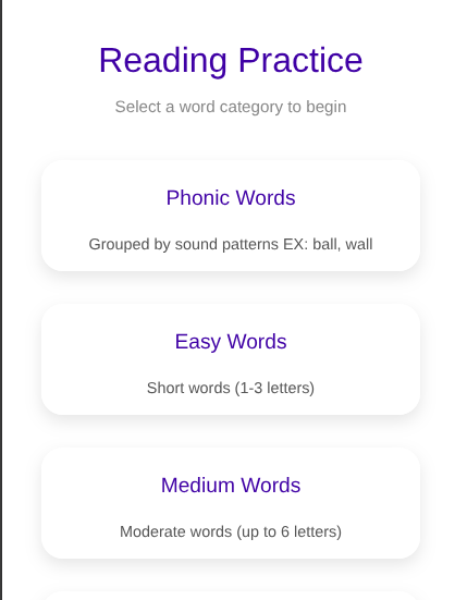 Master Practice reading phonic, easy, medium, and hard words. Level up skills!