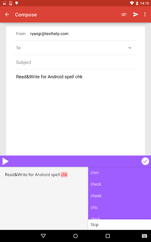 Read&Write for Android is an easy to use alternative keyboard with integrated features to help you with writing content such as emails, social media, or interacting with online forms etc. Specially created for Android tablets, it’s great for anyone who needs a little support with their reading and writing.