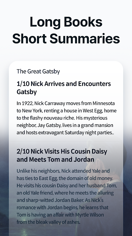 Simply flip up or down to move through each summary and quickly grasp the main ideas of every book—no hours of free time or complicated subscriptions needed. Build a reading habit the easy, effortless way.