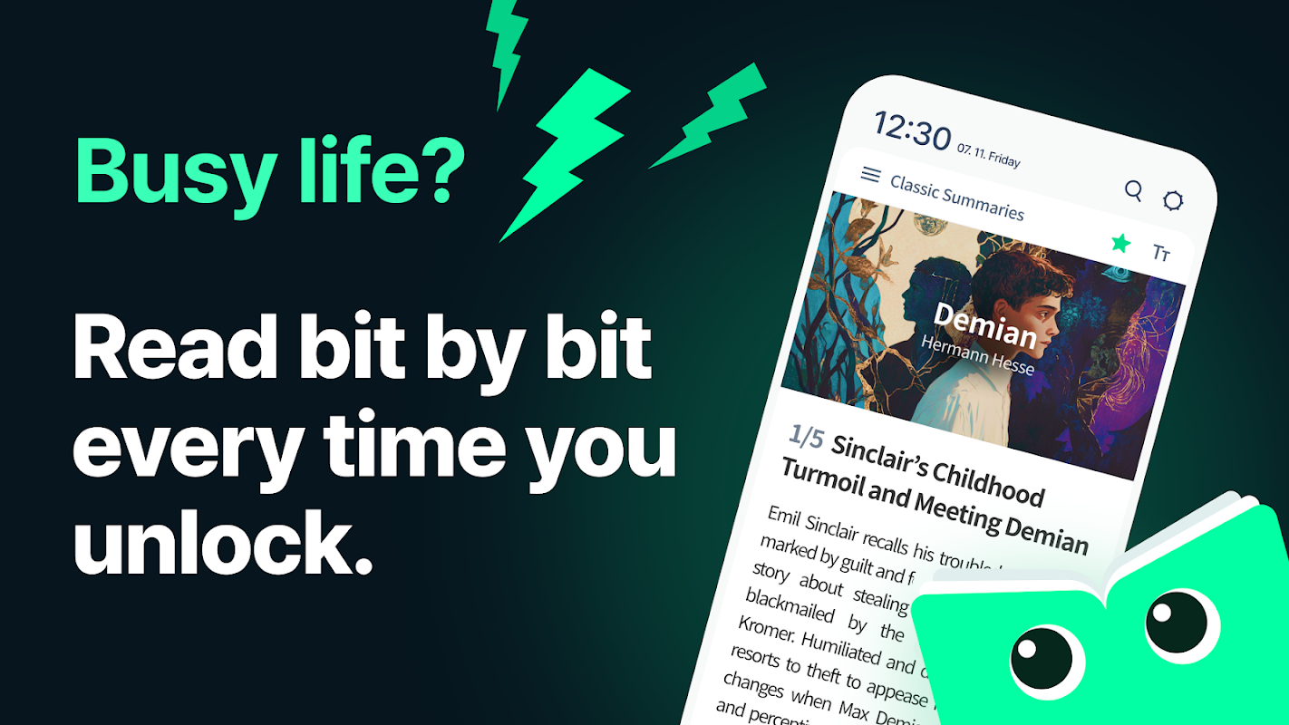 Classic book summaries on your lock screen—make reading a habit, effortlessly.