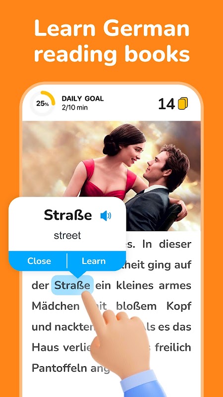 ENGO is a unique and effective German language learning app. Learn German in context with entertaining books & stories at your level. Build your German vocabulary with smart flashcards from topics you enjoy the most.