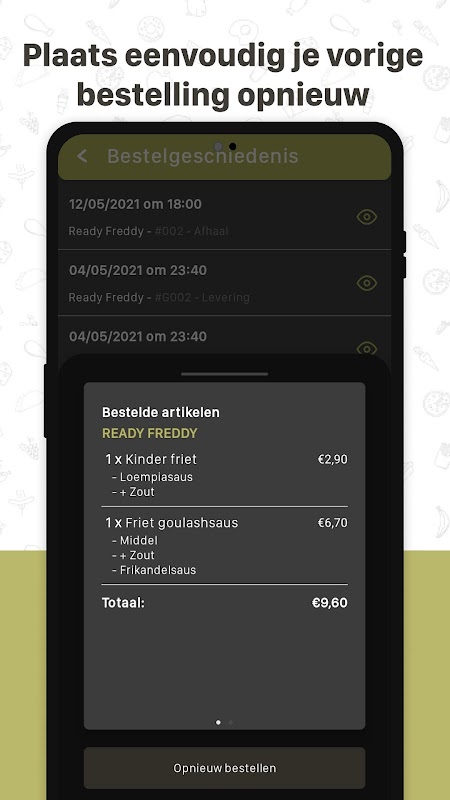 Via the favorites function or your order history you are only a few finger presses away from a new order. Really handy!