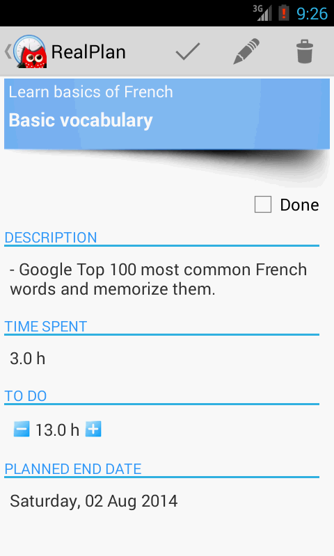 Please note, that it will take around a week, for the planning algorithm to achieve full accuracy. Planner learns from observation of your progress.