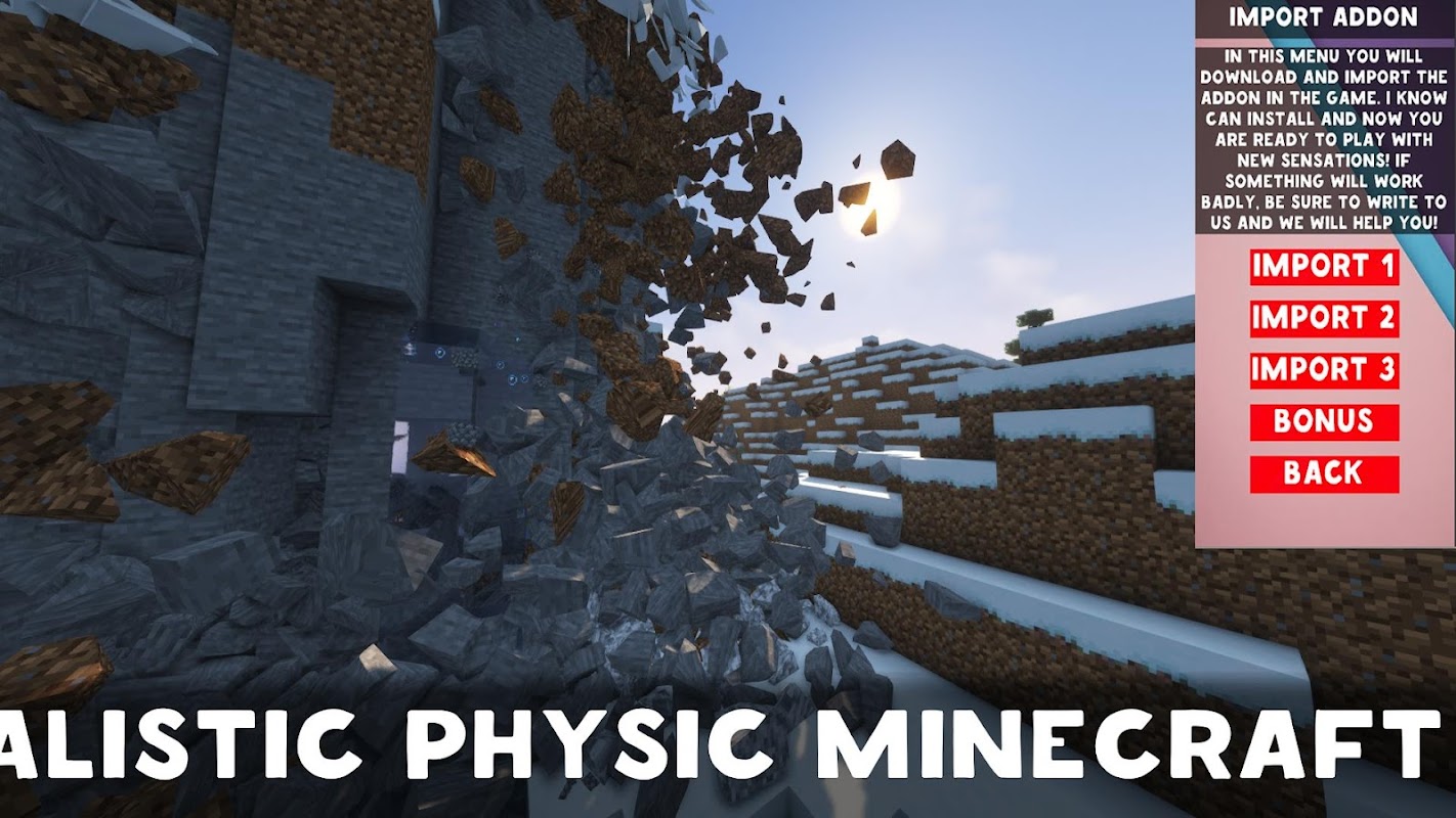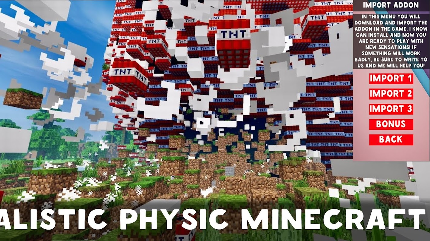 Realistic Physics mod for Minecraft PE is an addon that adds different rare Realistic Physic for Minecraft PE. Install Realistic Physics mod for Minecraft Pocket Edition, rejoice and let all other players envy your Realistic Physics