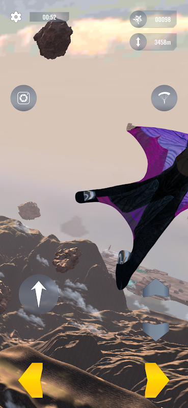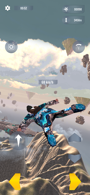 Choose your favorite costume style and enjoy the realistic beauties of the surrounding world! You have to overcome a difficult path by skydiving to be able to get to the finish line․ Numerous canyons, floating obstacles, narrow caves and sharp turns will hinder your progress in every possible way․ Earn a score and gain maximum flight speed to beat another record!