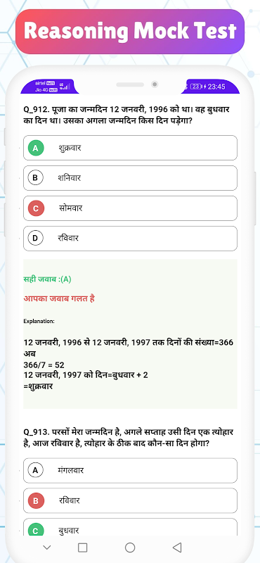 The Reasoning Mock Test 2024 is user-friendly, allowing you to access math question with quiz explanation. Whether you're tackling verbal, non-verbal reasoning or any other topic, this app has got you covered. It's like having a personalized tutor in your pocket!