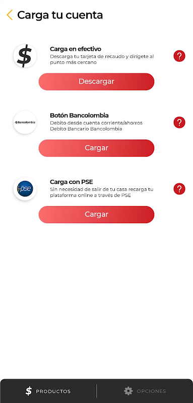 Métodos para cargar la cuenta a través de los QR's de Bancolombia, Nequi y daviplata.