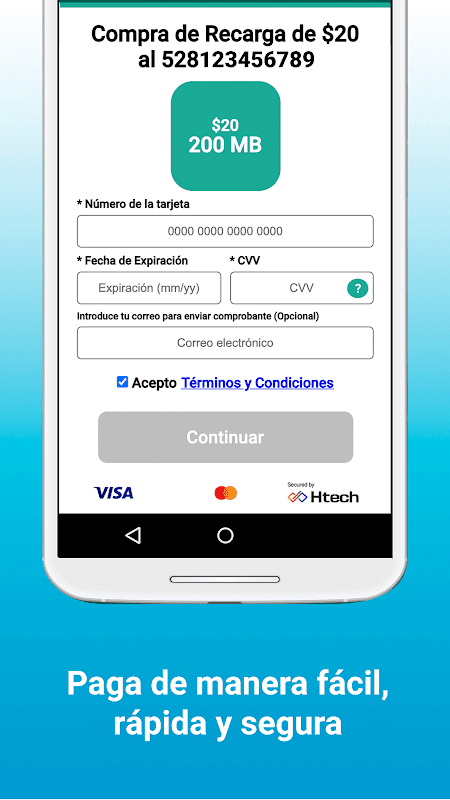 Aplicación para Recarga de Saldo y/o Paquetes AT&T desde tu dispositivo móvil de manera fácil y segura.