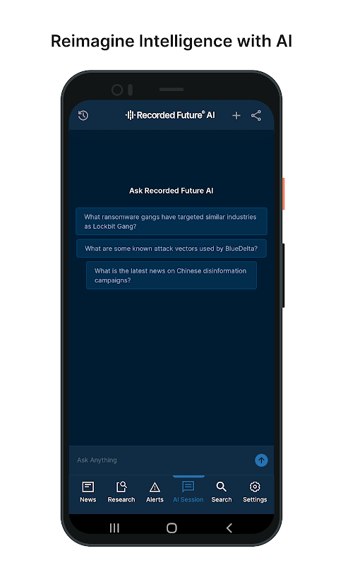 - Ask Recorded Future AI questions in natural language which are translated into queries to the Intelligence Graph.