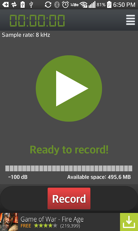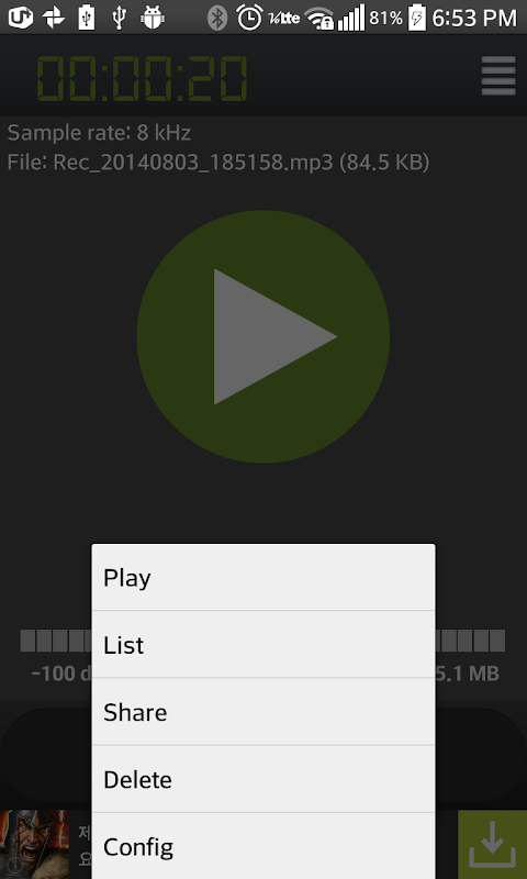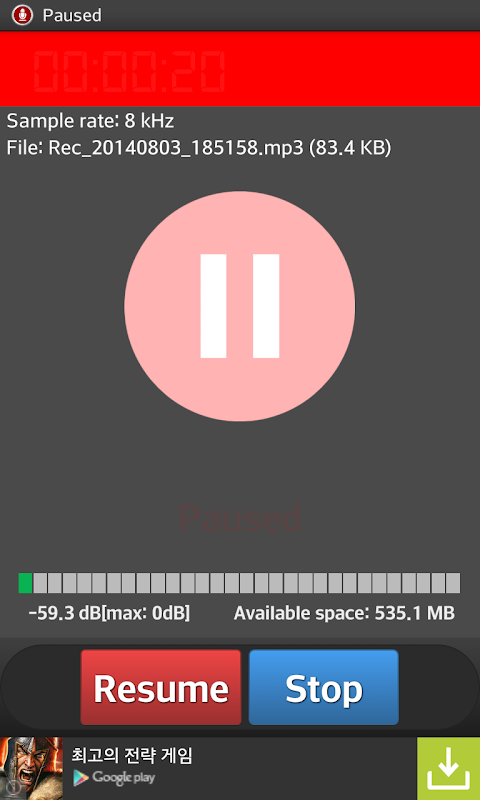 This app have the features Record / Pause / Share(such as email sent, MMS and Gmail)