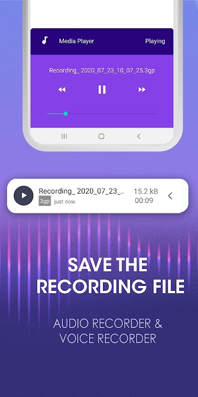 When you record a good recording, with Recorder app: Tape recorder & Sound recorder you can set it as a ringtone, alarm, or message. Not only that Recording app: Audio recorder & Voice recorder also save maximum battery for you even if Recorder app: Tape recorder & Sound recorder runs in the background.