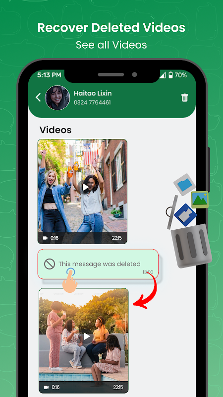 Recover deleted chat easily scan notifications of text messages. Restore app helps to view deleted messages, Videos, deleted photos and audios. Recover WhatsApp messages manage your media files easily with this photo and video recovery app.