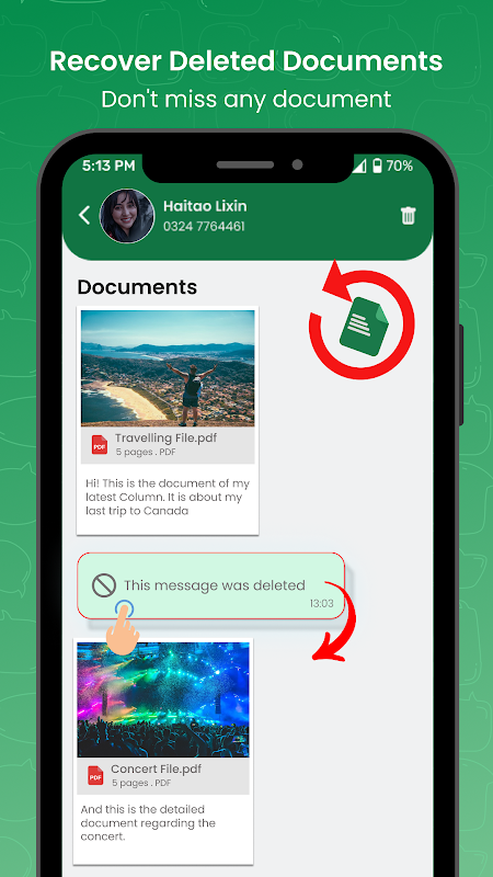 Unseen easily Recover deleted media files likes text messages, audios, videos, pictures, documents and stickers. Photo recovery sends WhatsApp notifications when text message or media file is removed and hidden chat are deleted. Retrieve WhatsApp messages can recover deleted WhatsApp data.