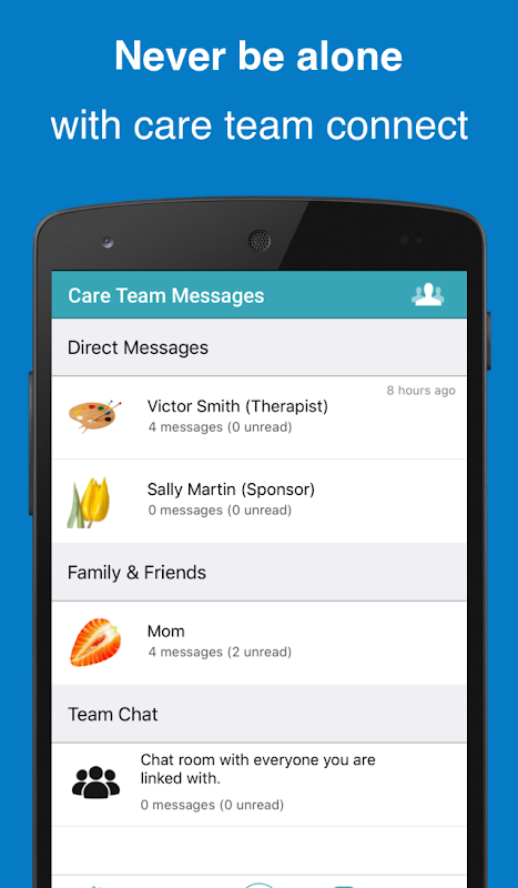 Use for self-help or link with your treatment team’s Recovery Path Clinician App, Sponsor/Mentor App and/or Friends/Family App.