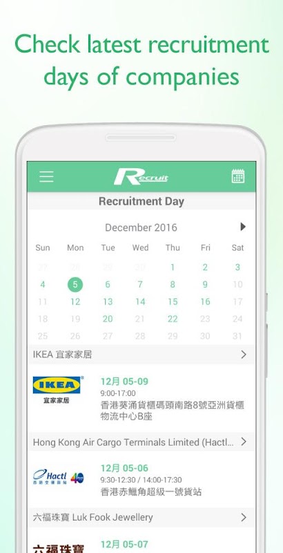 Recruit is the all-rounded recruitment media in Hong Kong. Apart from recruitment magazine, website, social media fan pages and career expos, we introduce Recruit mobile application which is the user-friendly apps for job seekers to do job searching in more convenient way.