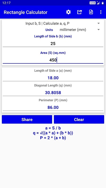 Rectangle Calculator helps you to quickly and easily calculate different parameters of the geometric shape rectangle. Automatic & accurate calculations.