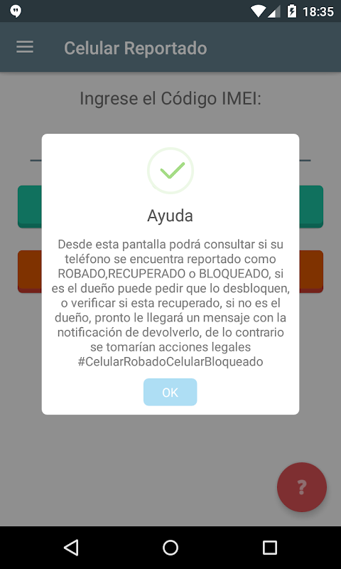 Just enter the IMEI, which the app obtains automatically or also by dialing * # 06 # from the cell phone, the search result will appear instantly, indicating if it is reported.