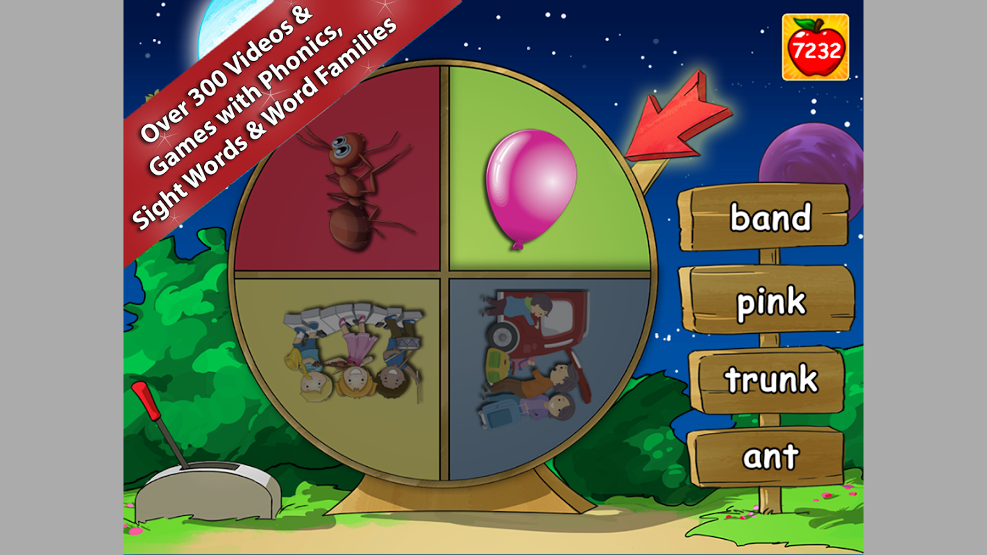 Map 2 of Park Planet (this app) includes 25 phonics and sight word lessons, plus 5 unit reviews with storybooks and reward games. Look for Map 1 (level B1) in the app store for previous lessons. Or, for more advanced reading lessons, look for the Red Apple Reading Level C - Island Adventures apps.