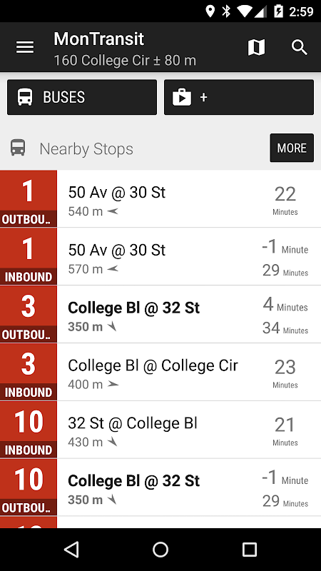 Once this application is installed, the MonTransit app will display buses information (schedule...).