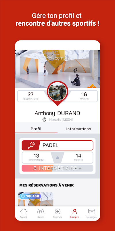 No more booking chore! With the application you just have to access the available slots and choose one. The club will then automatically receive your reservation.