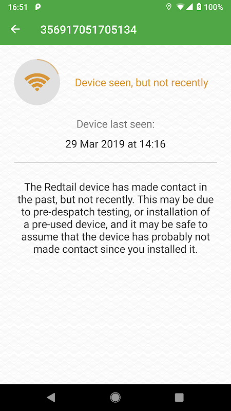 • Quickly check whether a Redtail device is communicating with Redtail Telematics' system;