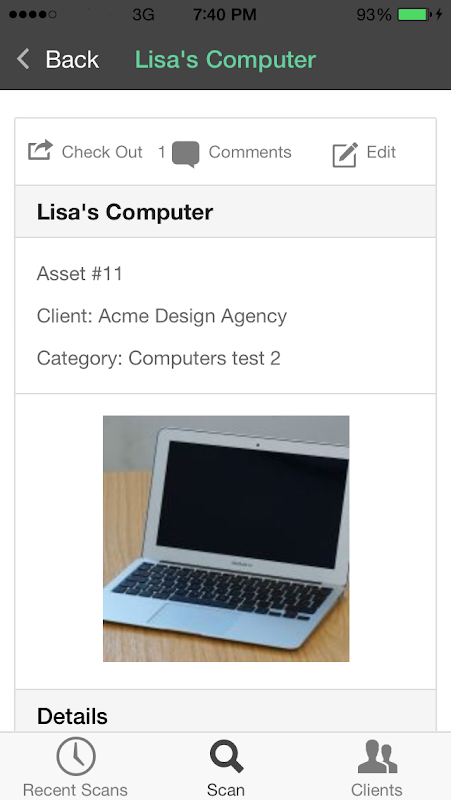 Our app allows you to view your assets from wherever you are. You can edit asset details, make new assets, and check your assets in and out.