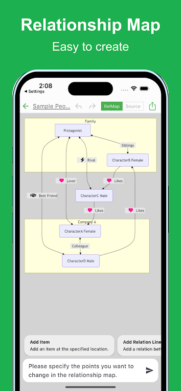 Simple Relationship Map is an app that automatically generates relationship maps based on your instructions using the latest AI technology. You can efficiently create various types of maps for your needs.