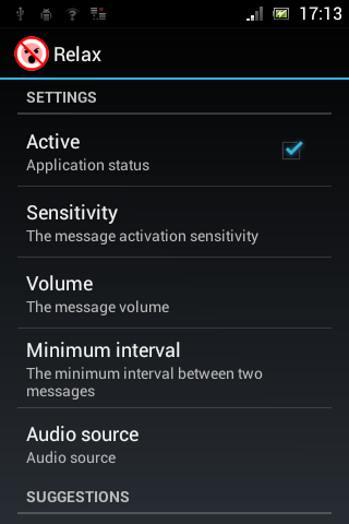 Various configuration parameters allow you to customize the behaviour of this application to make it effective and not annoying: as an example the message activation threshold level, the volume of the message and the minimum repeat interval.