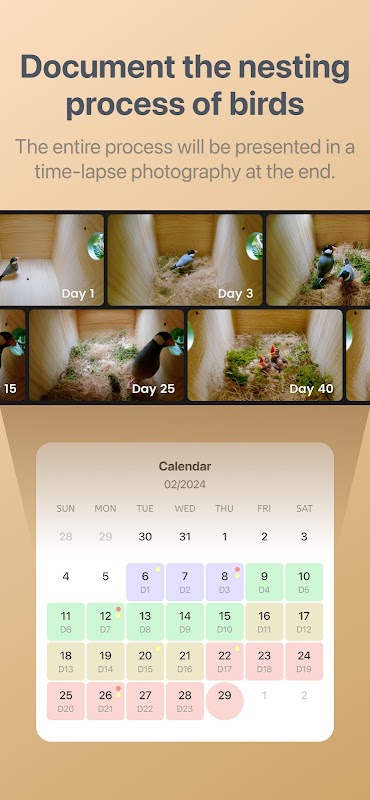 You can document the stages of birds nesting, hatching, and eventually leaving through a diary. This not only enhances the viewing experience but also results in a time-lapse video showcasing these precious memories.