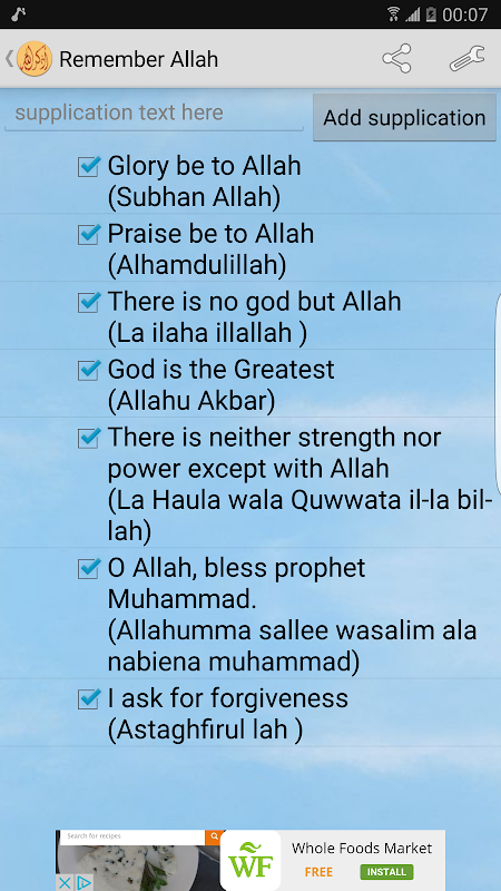 The purpose of this app is to remind you to remember Allah by automatically reminding you throughout the day to say athkar like subhan Allah, Alhamdulillah, Allah Akbar, and LA Illah Illa Allah.