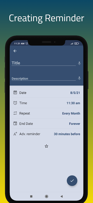 Set up a schedule to take care of all your errands with ease using our task reminder with alarm. Set date, time and detailed