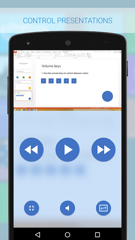 Control your slideshows directly from your smartphone! The screen of your PC will be transmitted to your smartphone in real time! That works with Powerpoint, Impress and Adobe Reader, Windows Media Center and more.