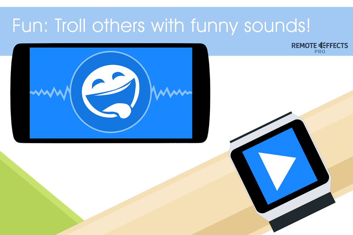 With Remote Effects Pro you can remotely activate a variety of sounds directly from your Android Wear device and play them on your phone completely unnoticed! Underline your joke with the proper sound or play pranks on your friends and family.