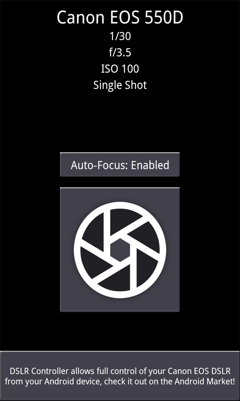 Remote Release allows you to "remote release" your Canon EOS DSLR from your Android device with only a USB cable.