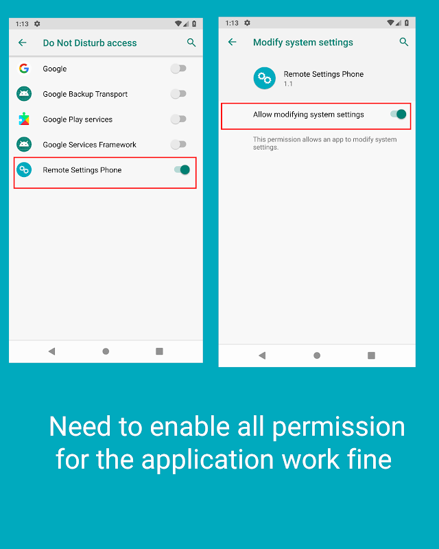 Note: Please enable all permission for phone applications