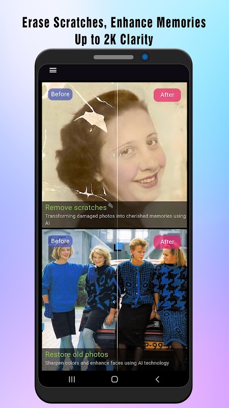 • Enhance Old Photos: Breathe new life into your cherished memories by improving image quality and sharpness.