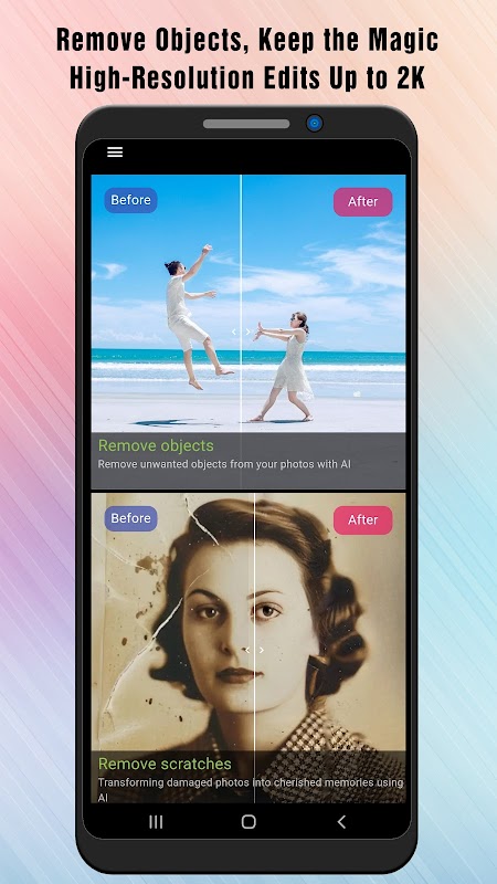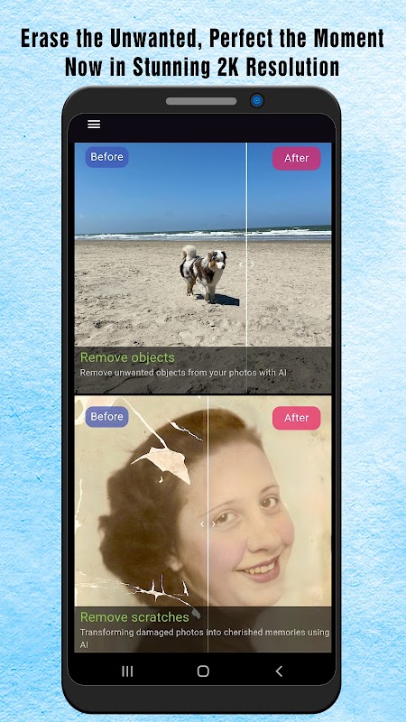 Unleash the power of AI with Remove Object - Remove Scratch, supporting high resolution, the ultimate photo restoration app! Designed for effortless editing, this app allows you to: