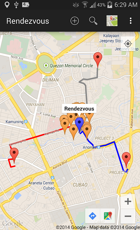 3. Tap the Rendezvous icon to look for the halfway point.