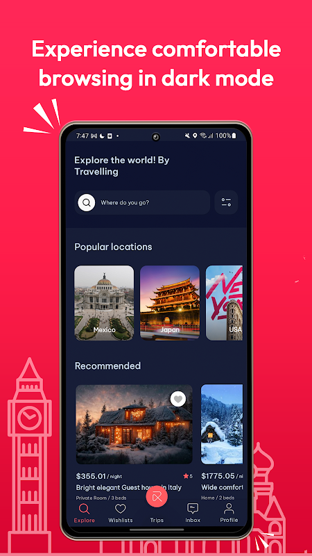 *Search easily for houses and places by destination, check-in and check-out dates and number of guests