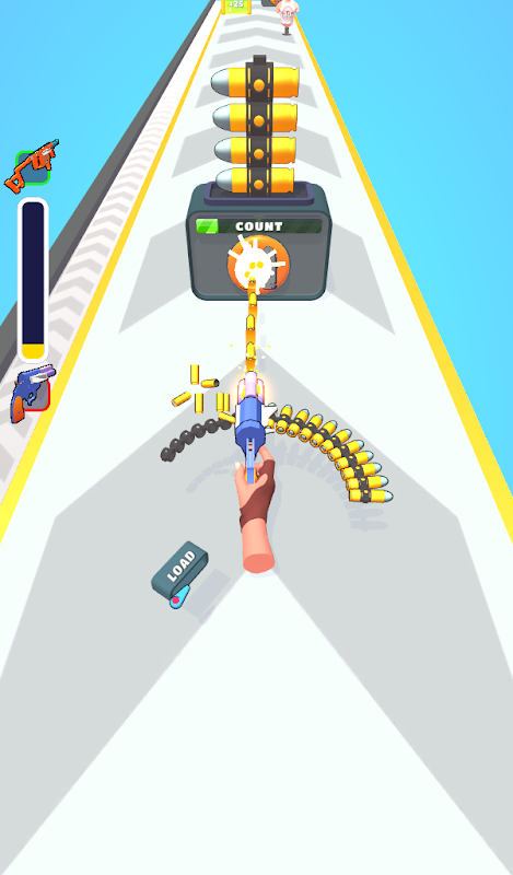 -Shoot the bullet containers on the road to collect more bullets. You can evolve the bullets and earn more.Collect more bullets to create a snake-like belt of bullets.