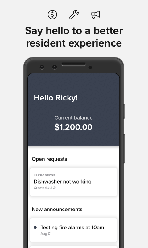 - Don't stress if you have an issue that needs to be fixed! Easily submit a request right from the app and include a photo so your property manager can get it resolved as soon as possible.