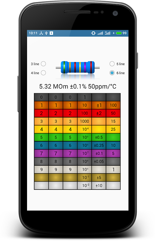 Program to determine the nominal value of the resistor and the accuracy of the colored marking on the housing. The program determines the resistor, depicts his appearance.