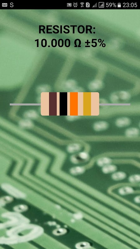 This application performs four band resistor identification. To do this, simply select each color with a simple touch on the desired range of the resistor shown on the screen.