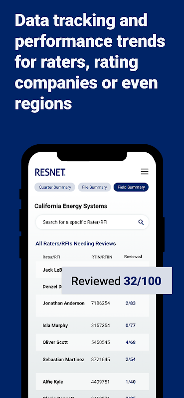 - Strengthen our industry’s QA Program by giving RESNET®, Providers, and QADs data tracking and performance trends across individual raters, rating companies, or even regions